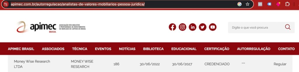 Curioso para saber mais? Confira o link abaixo para ver o cadastro da MW junto à Apimec, trilhando o caminho da legalidade e confiança. Seu futuro financeiro merece a qualidade que apenas profissionais certificados podem oferecer. Invista com tranquilidade, invista com a MW Research!